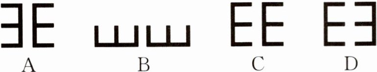 4 教材 P64 练习 T2·变式 (2025·江西南昌期末)视力表中的字母“E”有各种不同的摆放形式,下面每种组合的两个字母“E”不能关于某条直线成轴对称的是( ).