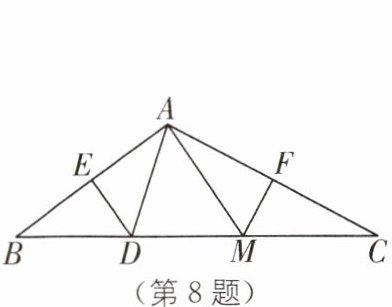 8 (2025·浙江宁波余姚期末)如图,在△ABC 中,AB,AC 的垂直平分线分别交 BC 于点 D,点 M,交 AB 于点 E,交 AC 于点 F,若 BC= 4,则△ADM 的周长为( ).