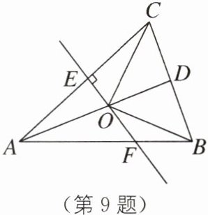 9 如图,在△ABC 中,AB= AC,D 是 BC 的中点,AC 的垂直平分线分别交 AC,AD,AB 于点 E,O,F,则图中全等三角形的对数是______.