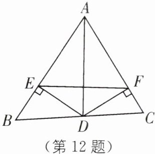 12 如图,在△ABC 中,D 为 BC 上一点,DE⊥AB,DF⊥AC,垂足分别为 E,F,DE= DF. 求证:AD 垂直平分 EF.