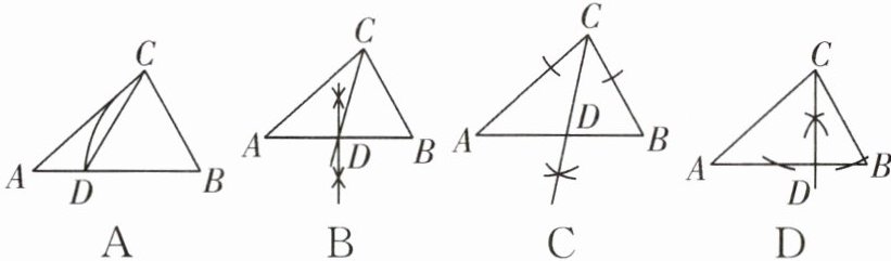 8 (2025·浙江宁波期末)观察下列作图痕迹,所作线段 CD 为△ABC 的中线的是( ).