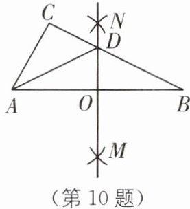 10 (2025·云南昆明盘龙区期末)如图,在△ABC 中,分别以点 A,B 为圆心,大于$\frac{1}{2}AB$的长为半径作弧,两弧相交于点 M,N,作直线 MN 交 BC 于点 D,交 AB 于点 O,连接 AD,若△ABC 的周长比△ADC 的周长大 14,则 AO 的长为( ).
