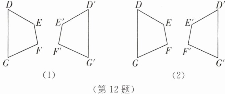 12 如图,四边形 DEFG 和四边形 D'E'F'G'关于某条直线成轴对称,记这条直线为直线 l.