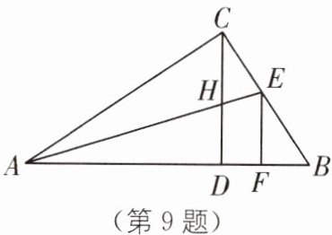 9 如图,在 Rt$\triangle ABC$中,CD 是斜边 AB 上的高,$\angle CAB$的平分线 AE 交 CD 于点 H,EF$\perp$AB 于点 F,则下列结论中不正确的是( ).
