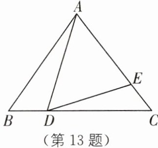13 中考新考法 探究几何问题 如图,已知在△ABC,AB= AC,点 D 在线段 BC 上,点 E 在线段 AC 上,设∠BAD= α,∠CDE= β.