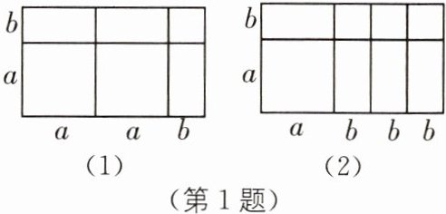 1 教材 P106 问题 2·变式 如图,根据图(1)的面积可以说明多项式的乘法运算 $(2a + b)(a + b) = 2a^2 + 3ab + b^2$,那么根据图(2)的面积可以说明多项式的乘法运算是( ).