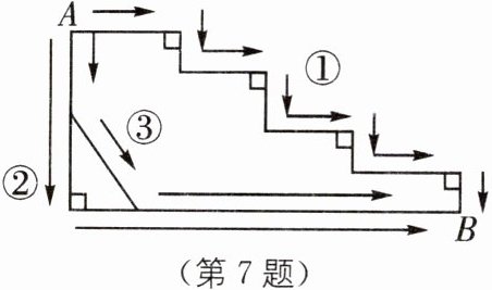 7 (2025·河北保定高阳期末改编)如图,从A地到B地有①②③三条路可以走,每条路长分别为l,m,n,则第