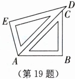 19 将一副三角板按如图所示的方法拼在一起,试求图中$∠B,∠D,∠E,∠EAB,∠BCD$的大小.