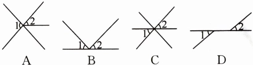下面图形中,$∠1与∠2$是对顶角的图形是(