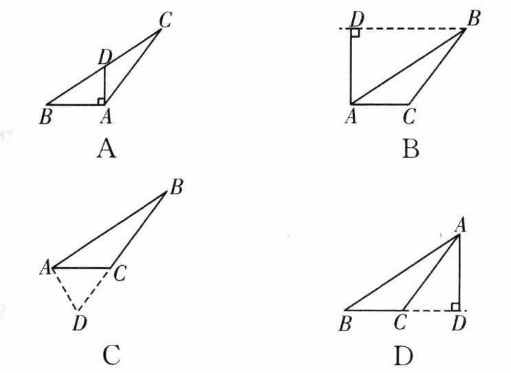 6 教材P177练习T2·拓展(2024·河北保定期末)下列图形中,线段AD的长度表示点A到直线BC距离的是(