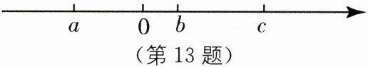 13. 如图,观察有理数a,b,c在数轴上的对应点的位置并比较大小:c-b______0,a+b______0.