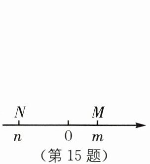 15. 如图,数轴上点M,N表示的数分别为m,n,$m-n= 8$. P为数轴上一点,其表示的数为p,若点P移动时,$|p-m|+|p-n|$的值始终保持不变,则当$|p-m|= 4|p-n|$时,$|p-n|= $____.