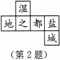 2. (2024·盐城中考)正方体的每个面上都有一个汉字,如图是它的一种平面展开图,那么在原正方体中,与“盐”字所在面相对的面上的汉字是( ).