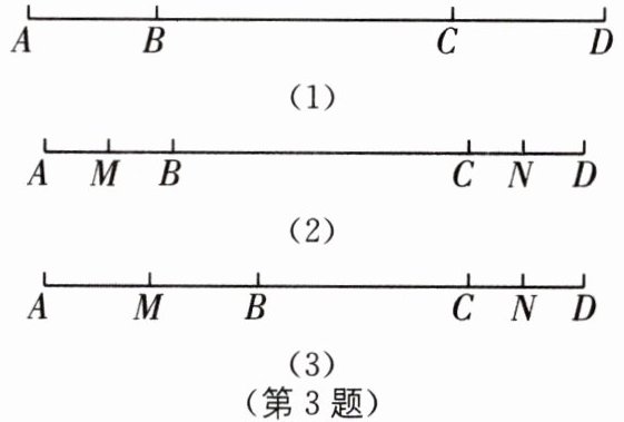 ③如图(3),若$AB≠CD,AD= a,MN= b$,M是AB的中点,N是CD的中点,直接写出BC的长度.(用含a,b的代数式表示)