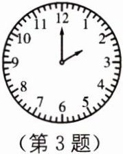 3. (2024·广西中考)如图,2时整,钟表的时针和分针所成的锐角为( ).