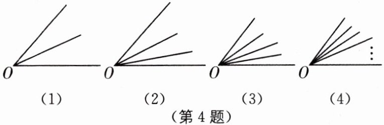 (2)探索发现:如图(4),当从点O引出n条射线共形成____个角.(用含n的式子表示)
