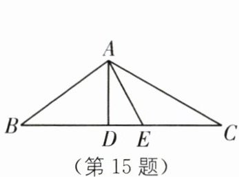 15. 如图,AD⊥BC于点D,AB= 5,AC= 6,AD= 3,点E是线段BC上的一个动点(含端点),连接AE,那么AE的长为整数值的线段有______条.