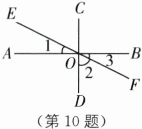 10. 如图,∠1= $28^{\circ}$,AB⊥CD,垂足为O,EF经过点O,则∠2的度数是______.