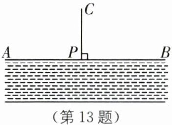 13. (2025·黑龙江哈尔滨期中)如图,欲在河岸AB上某处P点修建一水泵站,将水引到村庄C处,可在图中画出CP垂直AB,垂足为P,然后沿CP铺设,则能使铺设的管道长最短,这种设计的依据是:______.
