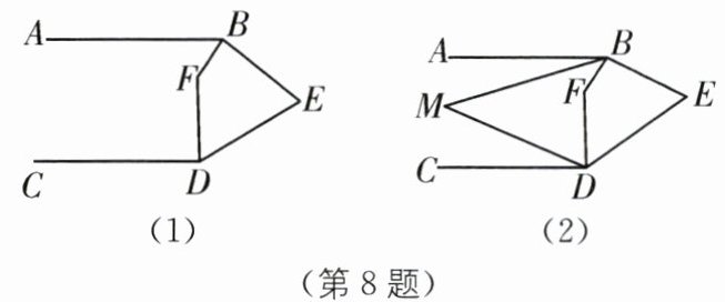 8. 如图(1),已知AB//CD,点E在BD连线的右侧,∠ABE与∠CDE的平分线相交于点F,则下列说法正确的是( ).
