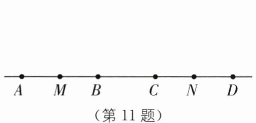 11. 如图,A,B,C,D四点在同一直线上,点M是线段AB的中点,点N是线段CD的中点,MN= a,BC= b,则线段AD的长度可表示为______.