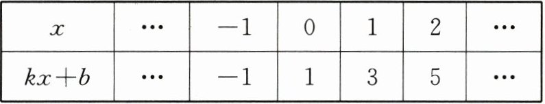 | $kx+b$ | …$$ | $-1$ | $1$ | $3$ | $5$ | …$$ |