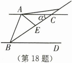 18. 如图,$AC// BD$,$BC平分∠ABD$,设$∠ACB为\alpha$,点$E是射线BC$上的一个动点,若$∠BAE:∠CAE= 5:2$,则$∠CAE$的度数为______.(用含$\alpha$的代数式表示)