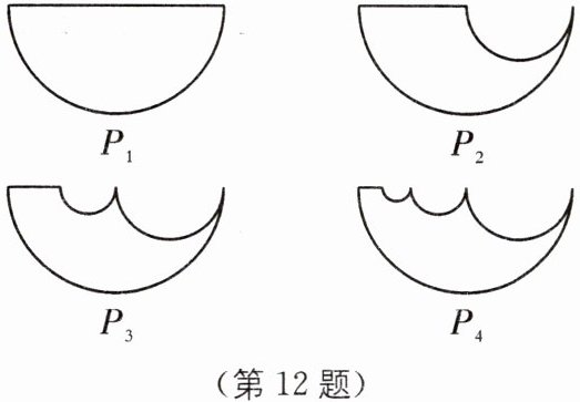 12 (2024·徐州期中)如图,$P_{1}是一块半径为1$的半圆形纸板,在$P_{1}的右上端剪去一个直径为1的半圆后得到图形P_{2}$,然后依次剪去一个更小的半圆(其直径为前一个被剪去的半圆的半径)得到图形$P_{3}$,$P_{4}$,…,$P_{n}$,…,记纸板$P_{n}的面积为S_{n}$,则$S_{n}-S_{n + 1}$的值为(
