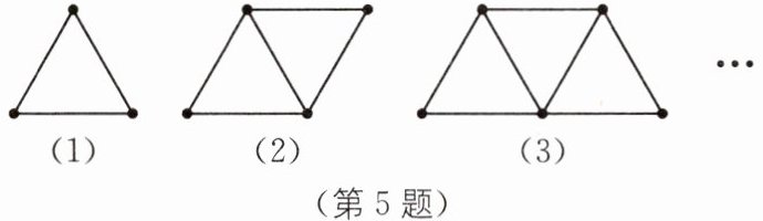 5 (2024·青海中考)如图是由火柴棒摆成的图案,按此规律摆放,第(7)个图案中有