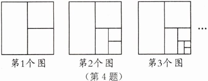 4 (教材 P6“折纸与剪拼”·拓展)如图所示,第 $ 1 $ 个图中将正方形取上下对边中点连线后,再取右侧长方形的长边中点连线;第 $ 2 $ 个图中,将第一个图中的右下方正方形继续按第一个图的方式进行操作,…,按此规律操作下去,则第 $ n $($ n $ 为正整数)个图形中正方形的个数是(