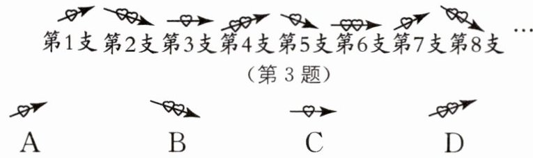 3 一组“穿心箭”按如下规律排列,照此规律,第 $ 2025 $ 支“穿心箭”是(