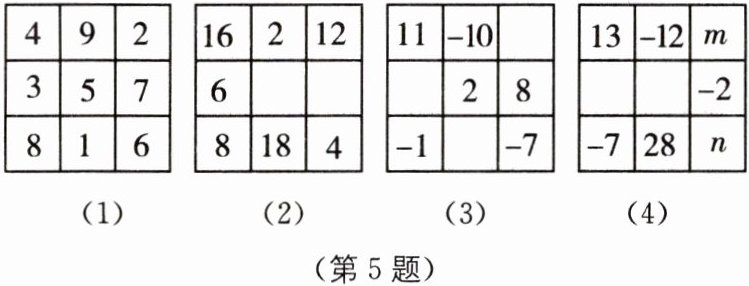 ∴m=n+20.由最下面一行与最右边一行的和相等可得−7+28+n=m−2+n,