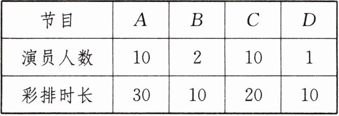 (1)若节目按“A-B-C-D”的先后顺序彩排,则节目D的演员的候场时间为____;