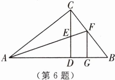 6. (2025·安徽安庆期末)如图,$CD为Rt\triangle ABC$斜边上的高,$\angle BAC的平分线分别交CD$,$BC于点E$,$F$,$FG\perp AB$,垂足为$G$.