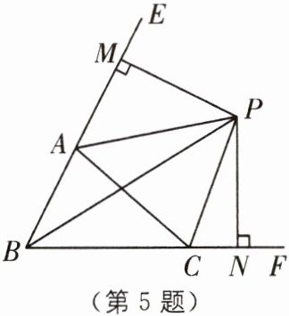 5. (2025·无锡惠山区期中)如图,在$\triangle ABC$中,$\angle ABC$,$\angle EAC的平分线BP$,$AP相交于点P$,延长$BA$,$BC$,$PM\perp BE$,$PN\perp BF$,则下列结论中正确的是____.(填序号)