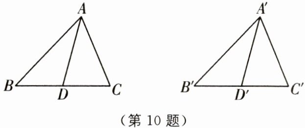 10 (2025·南京秦淮区期末改编)已知:如图,在△ABC 和△A'B'C'中,AD,A'D'分别是边 BC,B'C'上的中线,AB= A'B',BC= B'C',AD= A'D'.