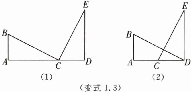 变式1.3 (1)如图(1),$AB \perp AD$,$ED \perp AD$,$AB= CD$,$AC= DE$,试说明$BC \perp CE$的理由;