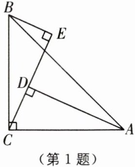 1 如图,$\angle ACB= 90^\circ$,$AC= BC$,$AD \perp CE$,$BE \perp CE$,垂足分别为$D$,$E$.$AD= 2.5\ \text{cm}$,$DE= 1.7\ \text{cm}$.求$BE$的长.