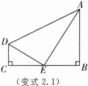 变式2.1 如图,$\angle B= 90^\circ$,$\angle C= 90^\circ$,$E为BC$的中点,$DE平分\angle ADC$.求证: