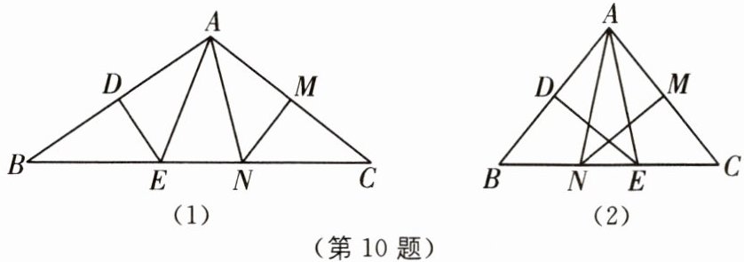 10(2025·南通启东期中)已知,在△ABC 中,DE 垂直平分边 AB,分别交 AB,BC 于点 D,E,MN垂直平分边 AC,分别交 AC,BC 于点 M,N.