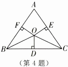 4 如图,O 是△ABC 内一点,且 O 到△ABC 三边 AB,BC,CA 的距离相等,若∠BAC= 70°,则∠BOC=