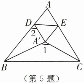 5 (2025·浙江长青教育发展共同体期末)如图,将△ABC 纸片沿 DE 折叠,点 A 落在点 A'处,恰好满足 A'B 平分∠ABC,A'C 平分∠ACB,若∠1= 125°,则∠2 的度数为