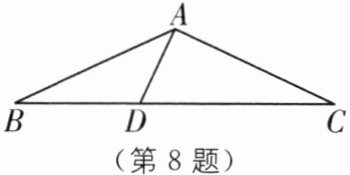 8 (2024·兰州中考)如图,在△ABC中,AB= AC,∠BAC= 130°,DA⊥AC,则∠ADB= (