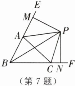 7 (2024·无锡锡山区期中)如图,在△ABC中,∠ACF,∠EAC的平分线CP,AP交于点P,延长BA,BC,作PM⊥BE于点M,PN⊥BF于点N,则下列结论中正确的个数是(