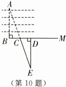10 (2025·广东肇庆高要区期末)如图,要测量河两岸相对的两点A,B的距离,可在河的一侧取AB的垂线BM上两点C,D,使BC= CD,再画出BM的垂线DE,使E在AC的延长线上,若BD= 10 m,DE= 12 m,CE= 13 m,则A,B两点的距离是(