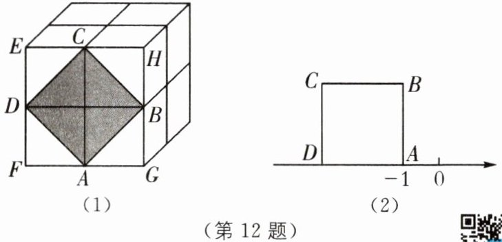 (3)把正方形$ABCD$放到数轴上,如图(2),使得点$A$与-1重合,那么点$D$在数轴上表示的数为______.