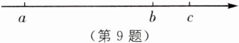 9 (2024·浙江杭州上城区期末)实数 a,b,c 在数轴上的对应点的位置如图所示,若$|b|= |c|$,则下列结论错误的是(