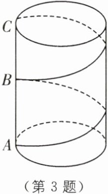 3 (2025·盐城亭湖区期中)如图,在底面周长约为 6 米且带有层层回环不断的云朵石柱上,有一条雕龙从柱底沿立柱表面均匀地盘绕 2 圈到达柱顶正上方(从点 A 到点 C,B 为 AC 的中点),刻有雕龙的部分的柱身高约 16 米,则雕刻在石柱上的巨龙长度至少为______
