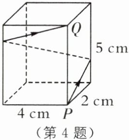 4 如图,长方体的底面边长分别为 2 cm 和 4 cm,高为 5 cm.若一只蚂蚁从点 P 开始经过 4 个侧面爬行一圈到达点 Q,求蚂蚁爬行的最短路径长.
