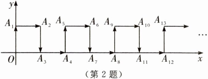 2. (2024·甘州中考)如图,在平面直角坐标系中,一动点从原点O出发,按向上,向右,向下,向右的方向不断地移动,每移动一个单位,得到点$A_1(0,1),A_2(1,1),A_3(1,0),A_4(2,0),…,$那么点$A_2₀_2₀$的坐标为______